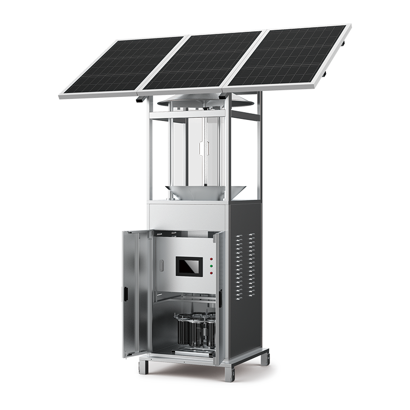 7、接蟲器自動(dòng)轉(zhuǎn)換,八位自動(dòng)轉(zhuǎn)換系統(tǒng),保證8個(gè)時(shí)間段誘集到的昆蟲不混淆。