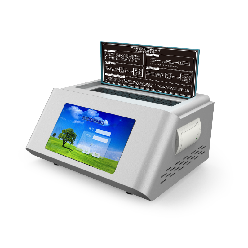 8、檢測模塊具有智能溫控裝置,自動判斷環(huán)境溫度并根據所選農殘卡樣式,自動判定并能顯示最佳溫度,可自動加熱并恒溫,保證反應在最佳穩(wěn)定溫度進行,檢測快速簡單。