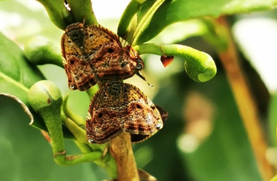 可可廣翅蠟蟬在湖南湘西1年發(fā)生1代,以卵在茶樹或其他植物嫩梢組織中越冬。在江蘇,可可廣翅蠟蟬是茶園中發(fā)生最早的蠟蟬,1年發(fā)生2代,以卵在茶樹枝梢及茶園周邊寄主的枝梢內越冬。越冬卵于4月上、中旬開始孵化,4月下旬盛孵,5月下旬成蟲始發(fā),6月上旬盛發(fā),下旬始卵,7月上旬盛卵。第二代若蟲于7月中、下旬始孵,8月上旬盛孵,9月下旬羽化為成蟲,10月中、下旬盛卵,11月上旬成蟲陸續(xù)死亡。