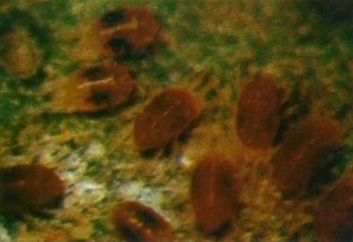 若螨:一齡若螨卵圓形,暗紅色,長約0.20mm,寬約0.13mm。二齡若螨長0.23?0.26mm,寬約0.14mm,淡紅色。